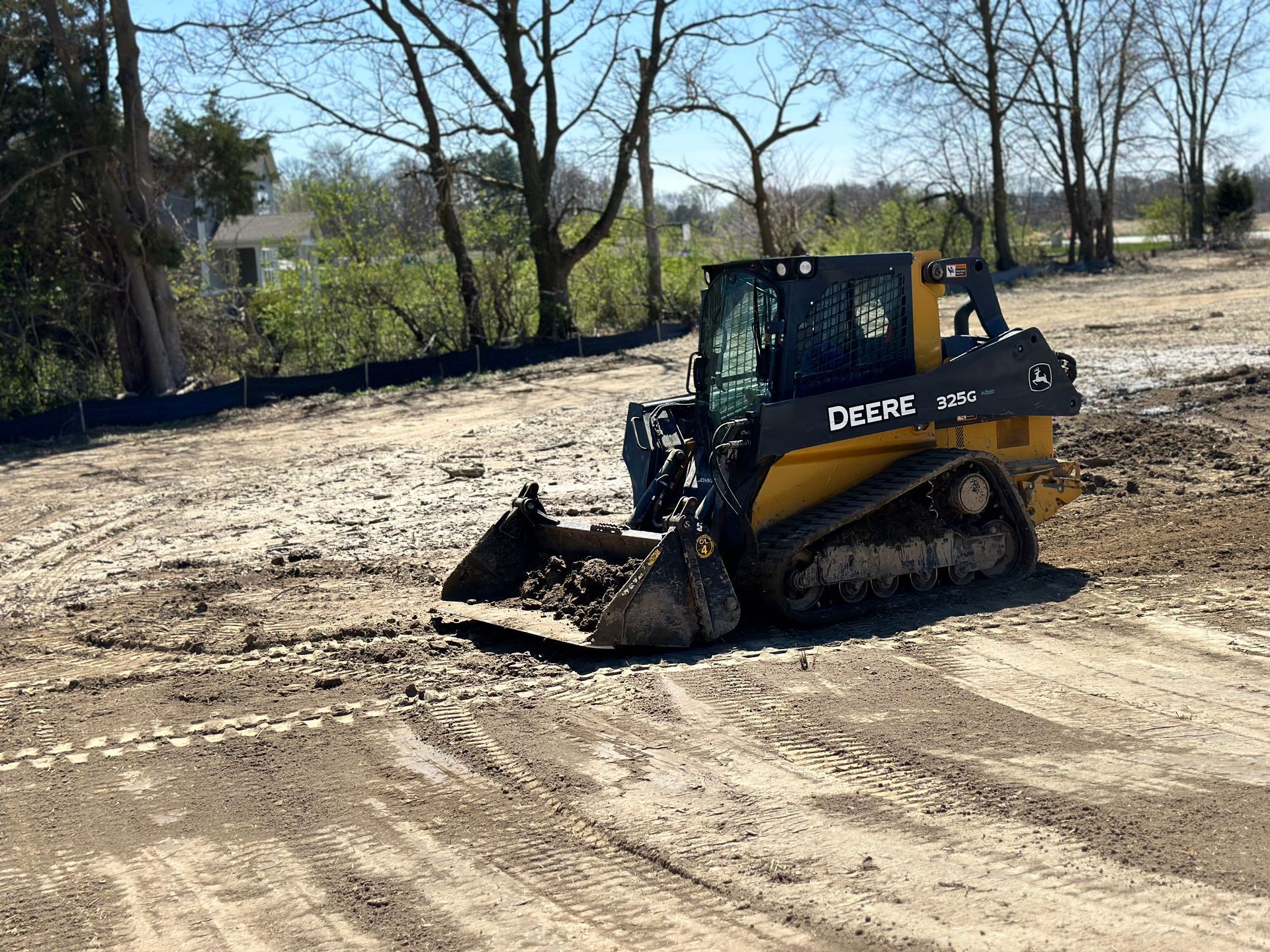 Grading work is planned to minimize impact on established beds, trees, and hardscape features. The team works around existing plantings and adjusts the grade to protect root zones and drainage patterns.